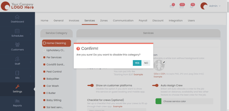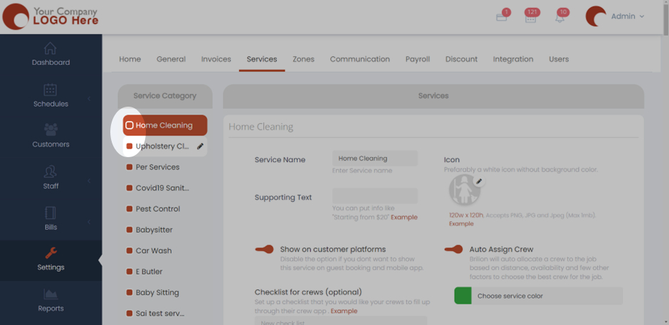 - Here, the Upholstery Cleaning service will be disabled once we click on the box right next to it.